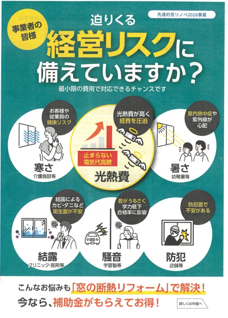 【事業者様向け】光熱費対策+減災・防災に|窓リノベ補助金のご案内✨