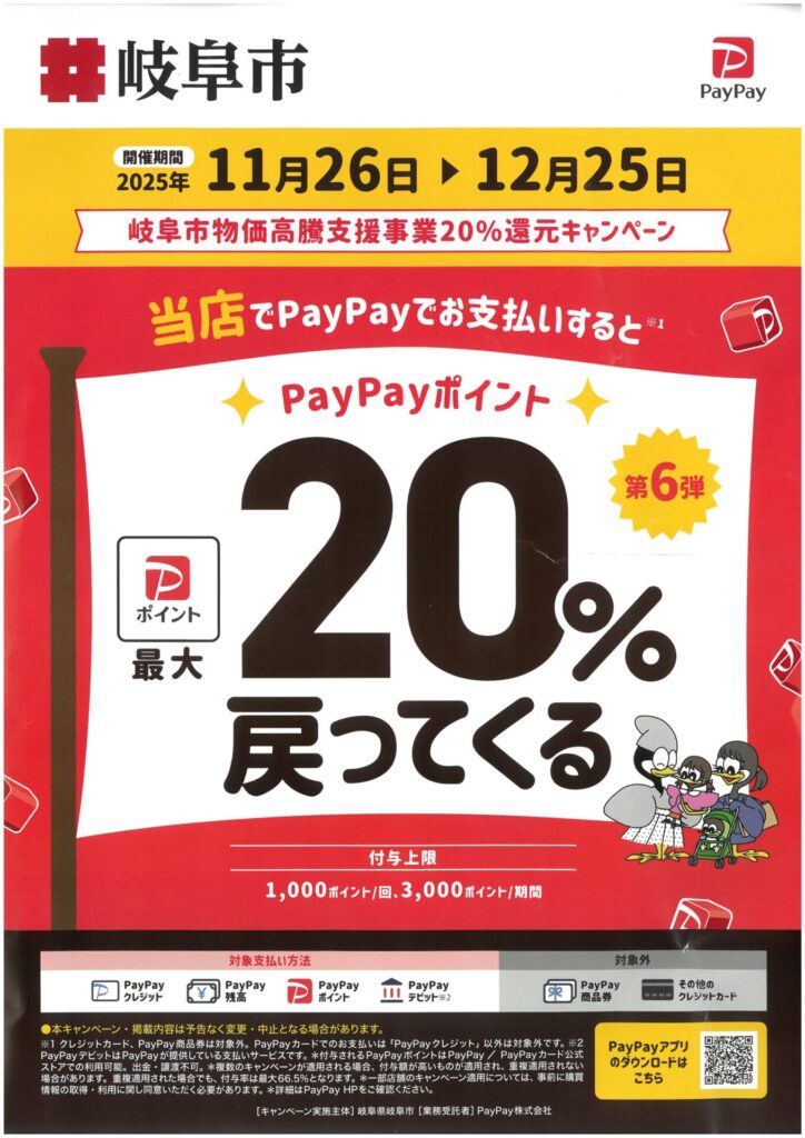 当社は『岐阜市物価高騰支援事業20%還元キャンペーン』の対象店となります。