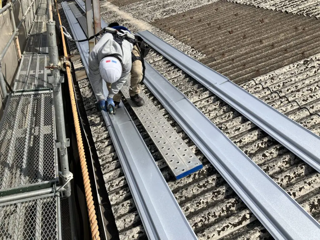 スレート屋根カバー工事🏭T工場(岐阜県岐阜市)②セーフティシート敷き工事