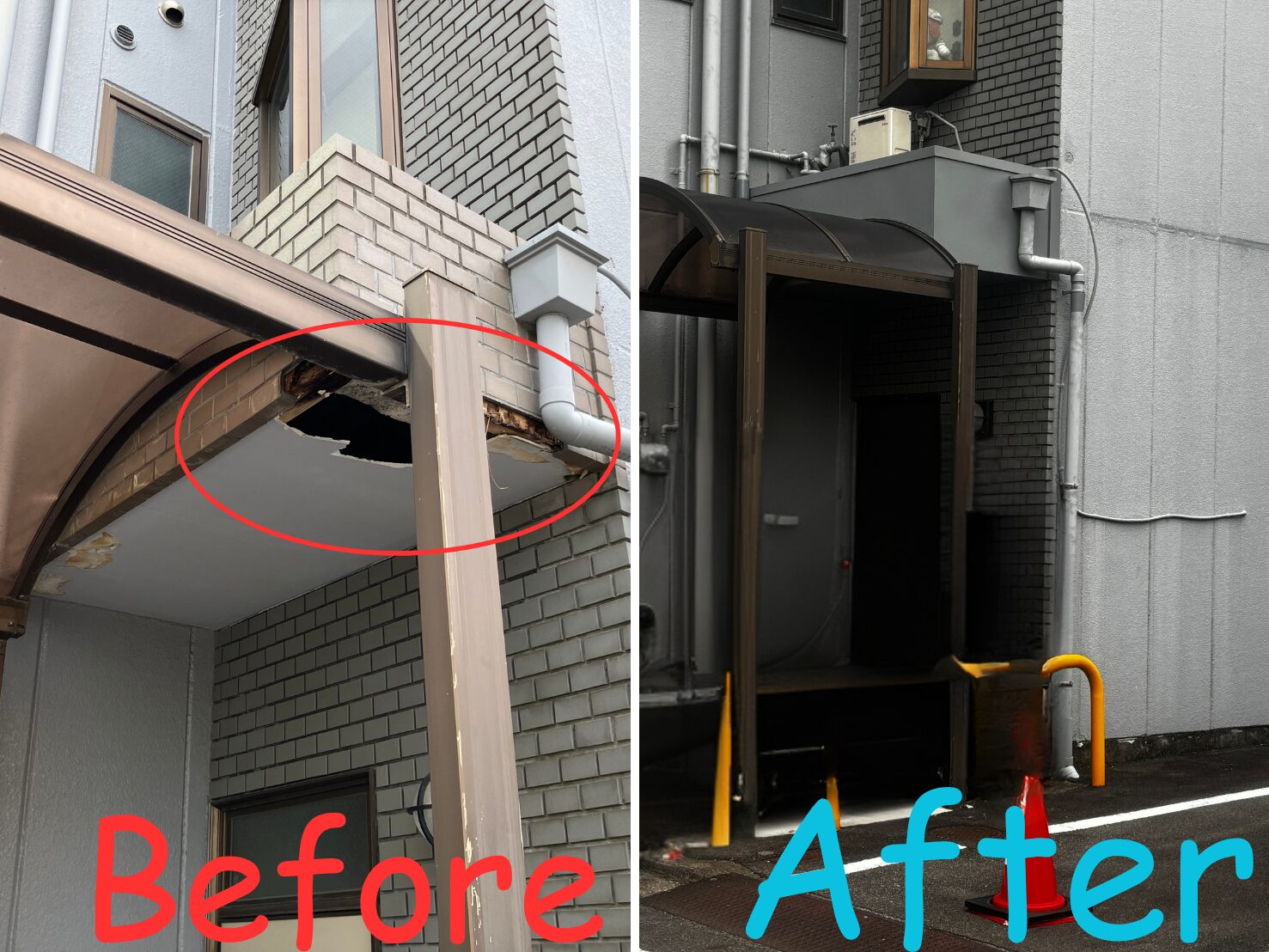 【板金工事】玄関屋根 パラペット タイル・軒天剥落修理 カバー工事 W様邸(愛知県一宮市)