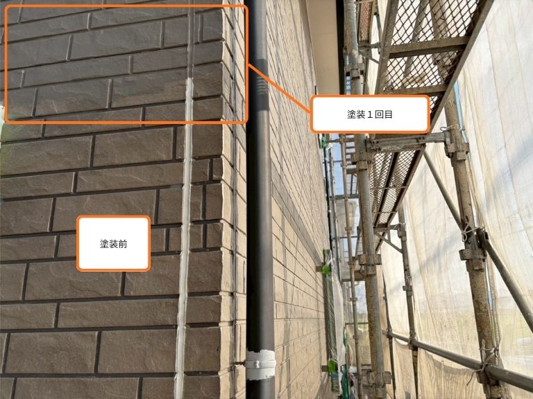 軒天塗装完了後、外壁塗装の作業に入っていきました!