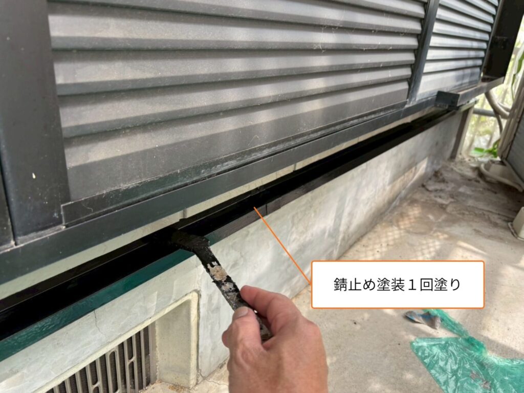 水切補修完了後、鉄部の錆止め塗装をしていきました!