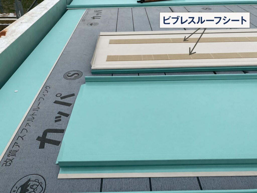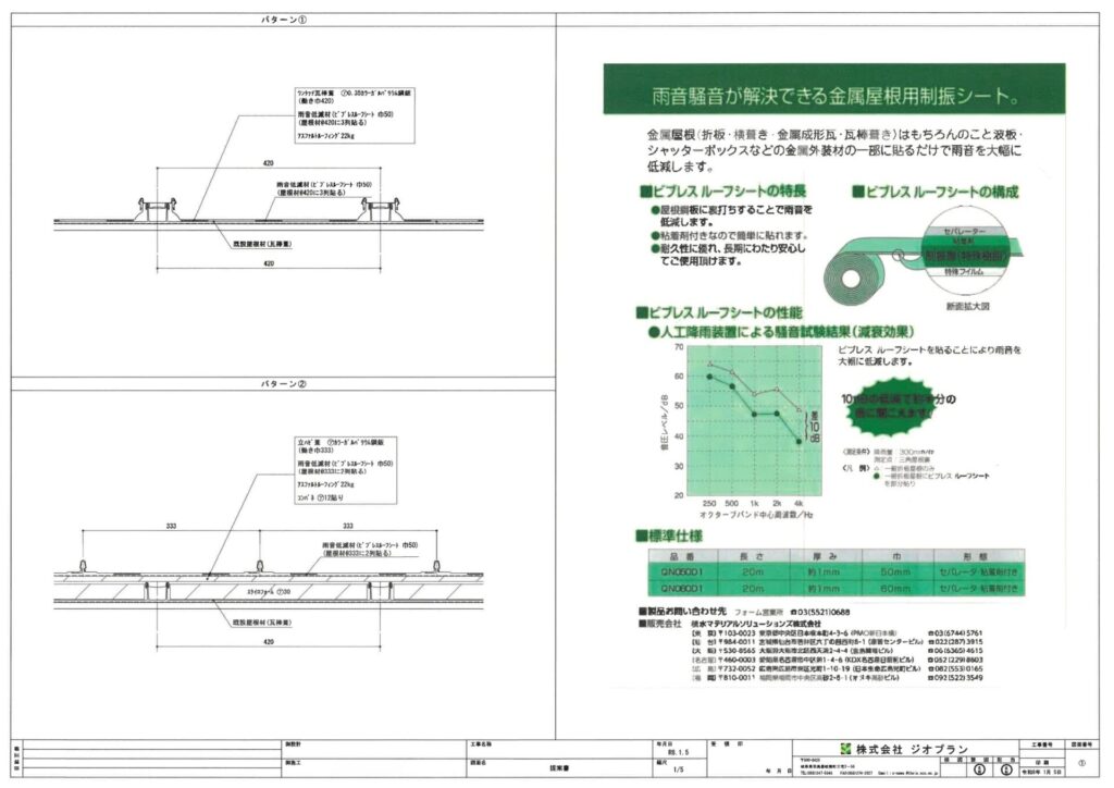 ワンタッチ瓦棒葺きに加え、ビブレスルーフシート(制振シート)を貼ることで音を抑制します 。 - パターン②