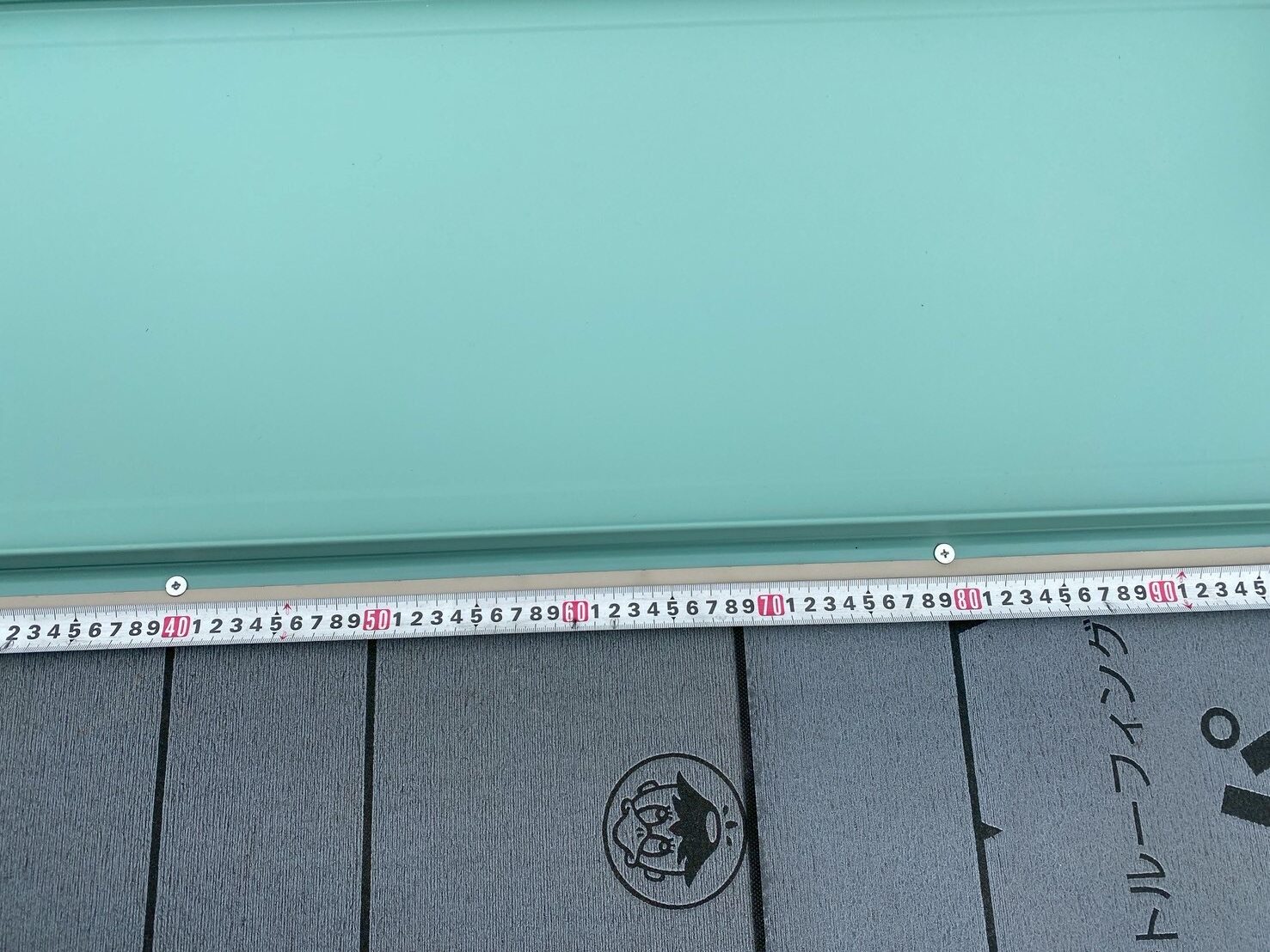 屋根材をビスで固定する際も、スケールでしっかり均等な感覚になるように固定していきました。