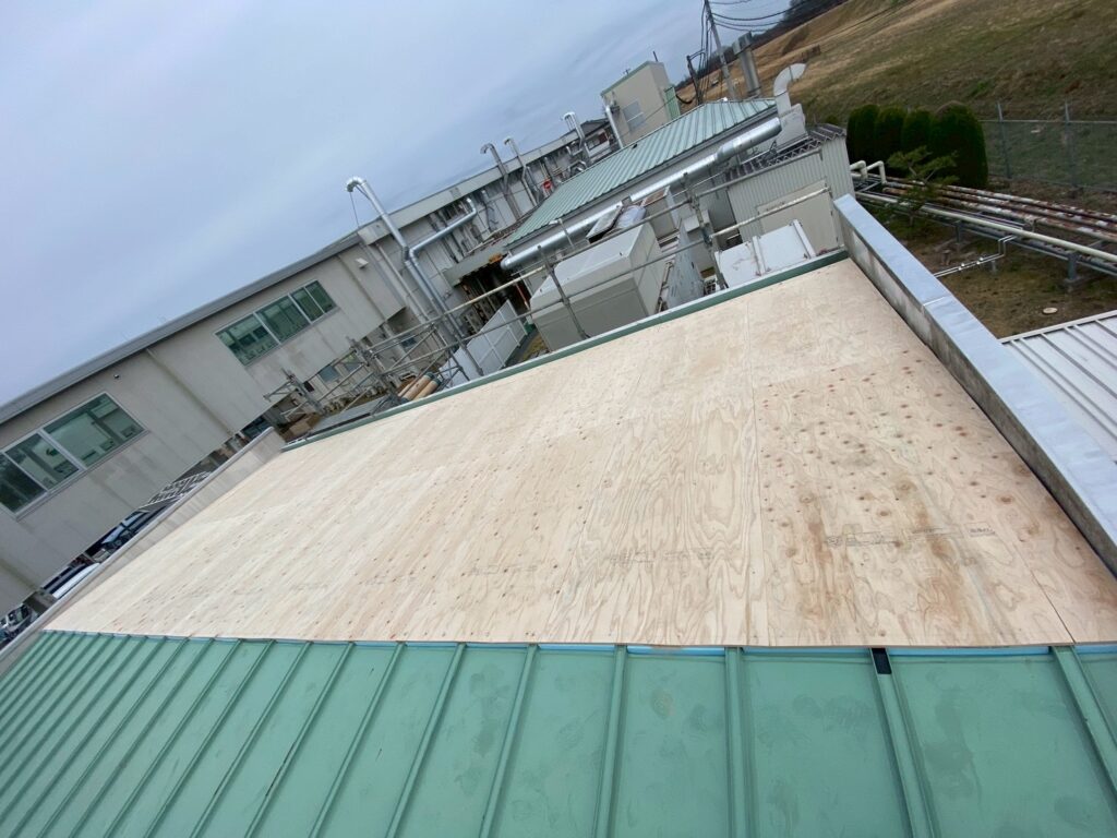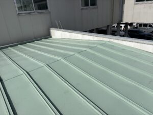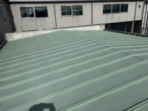 防水シート(ルーフィング)施工完了後、新設の屋根葺き作業をしていきました。