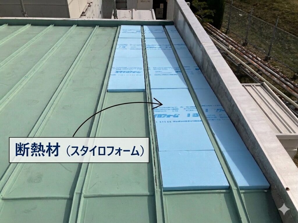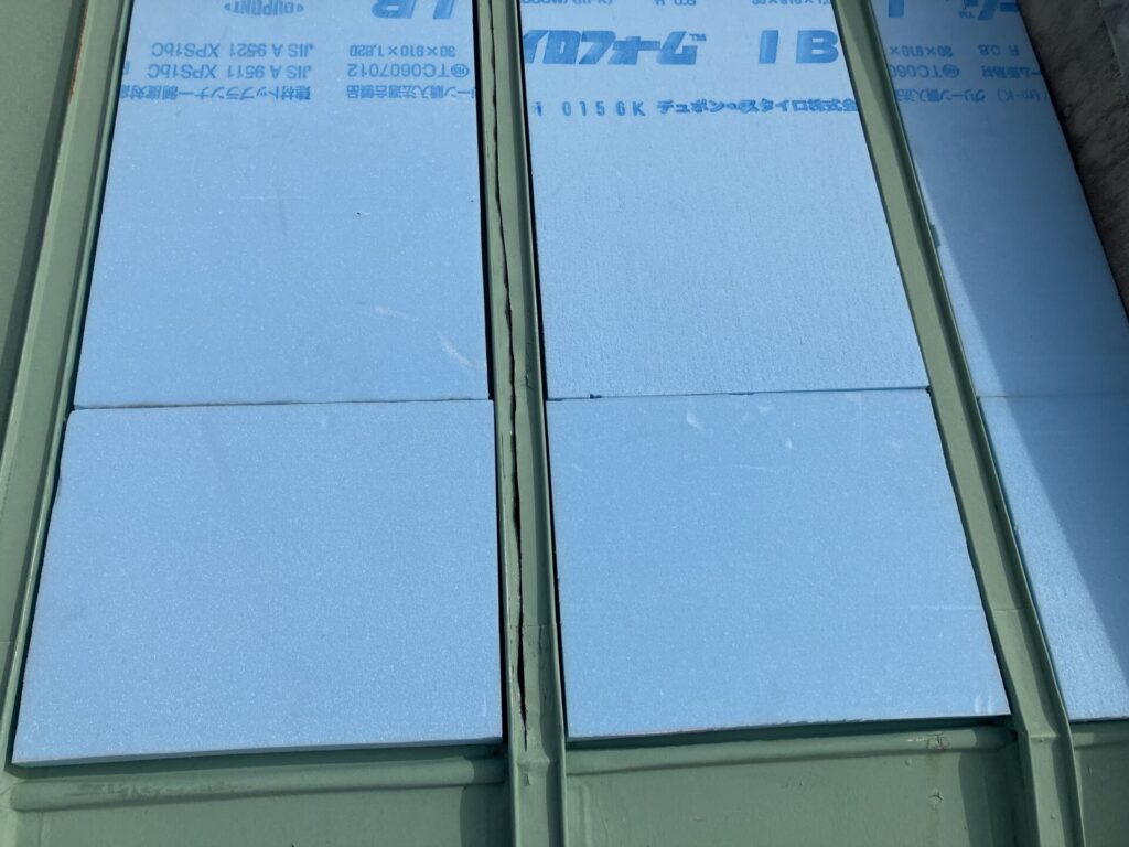 まず初めに、既設屋根材の上に断熱材(スタイロフォーム)を施工していきました。