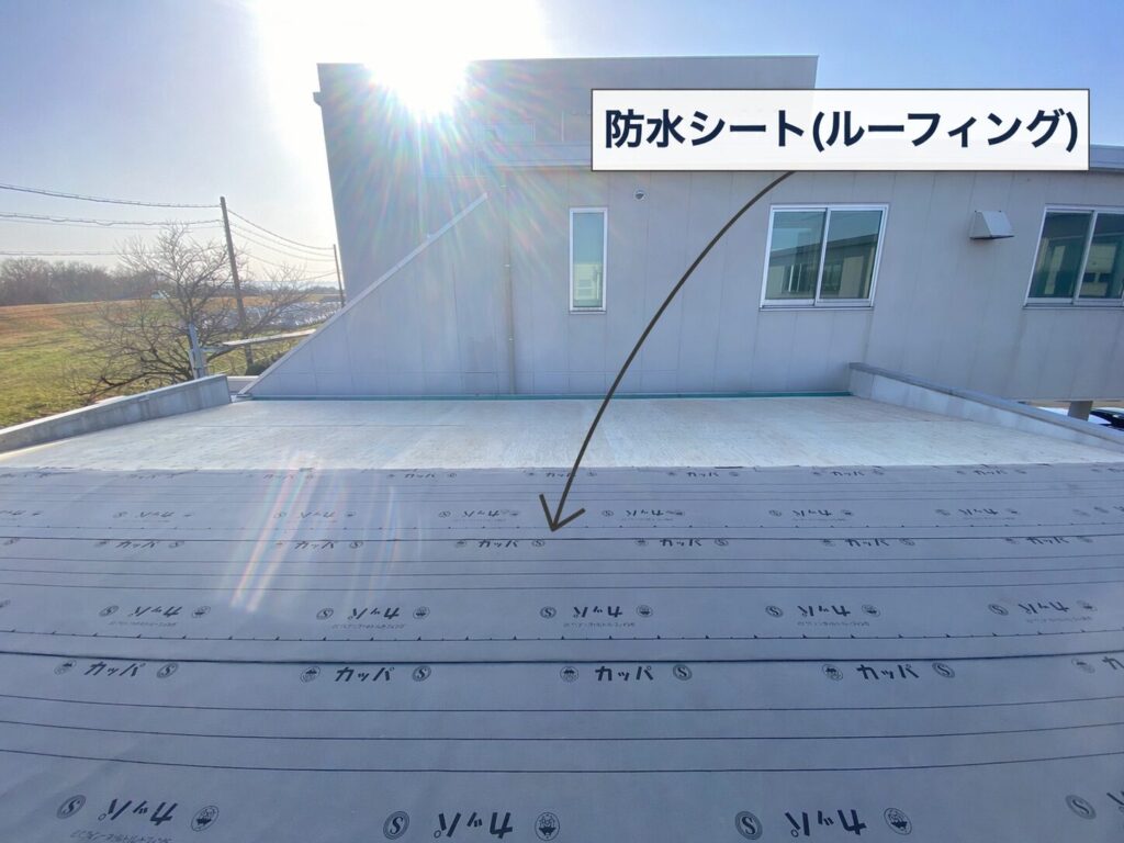 下地材(構造用合板)施工完了後、防水シート(ルーフィング)を施工していきました。