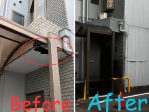 【板金工事】玄関屋根 パラペット タイル・軒天剥落修理 カバー工事 W様邸(愛知県一宮市) 今回は、玄関上パラペットのタイル・軒天部分が剥落してしまっているとお問い合わせをいただき工事をさせていただいた方の工事の様子をご紹介致します! 【現場調査...