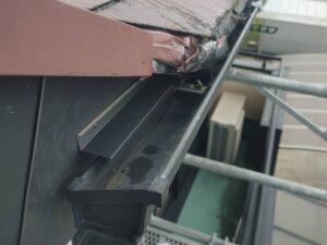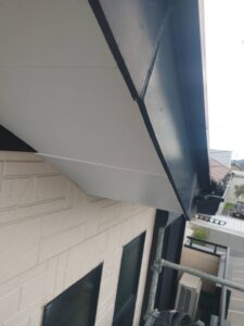 軒樋撤去後、雨水が軒樋にしっかり流れるように破風包み板金を施工しました!