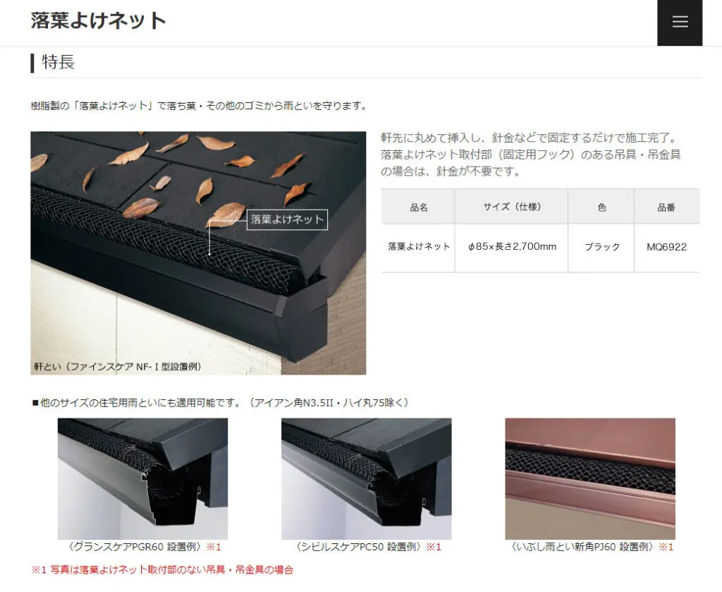 今回は、雨樋の落ち葉対策をしたいとの事でご相談を受け工事をさせていただきましたので
