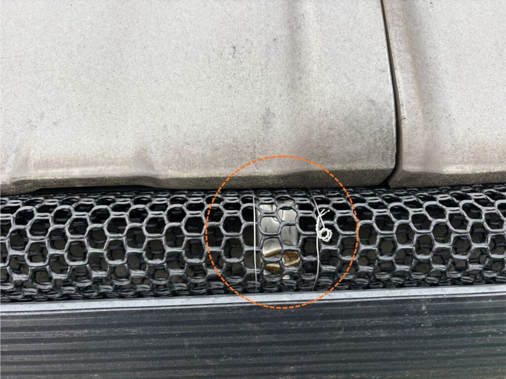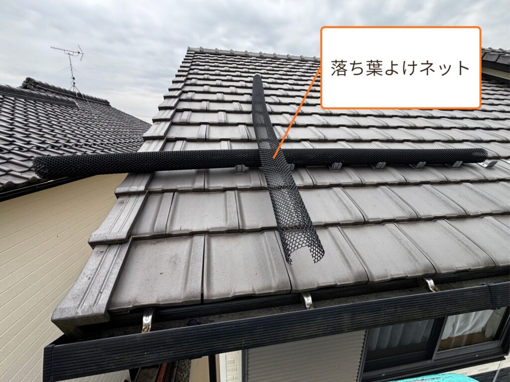 雨樋に”落ち葉よけネット”を使用して対策工事をさせていただくことをご提案させていただきました💡
