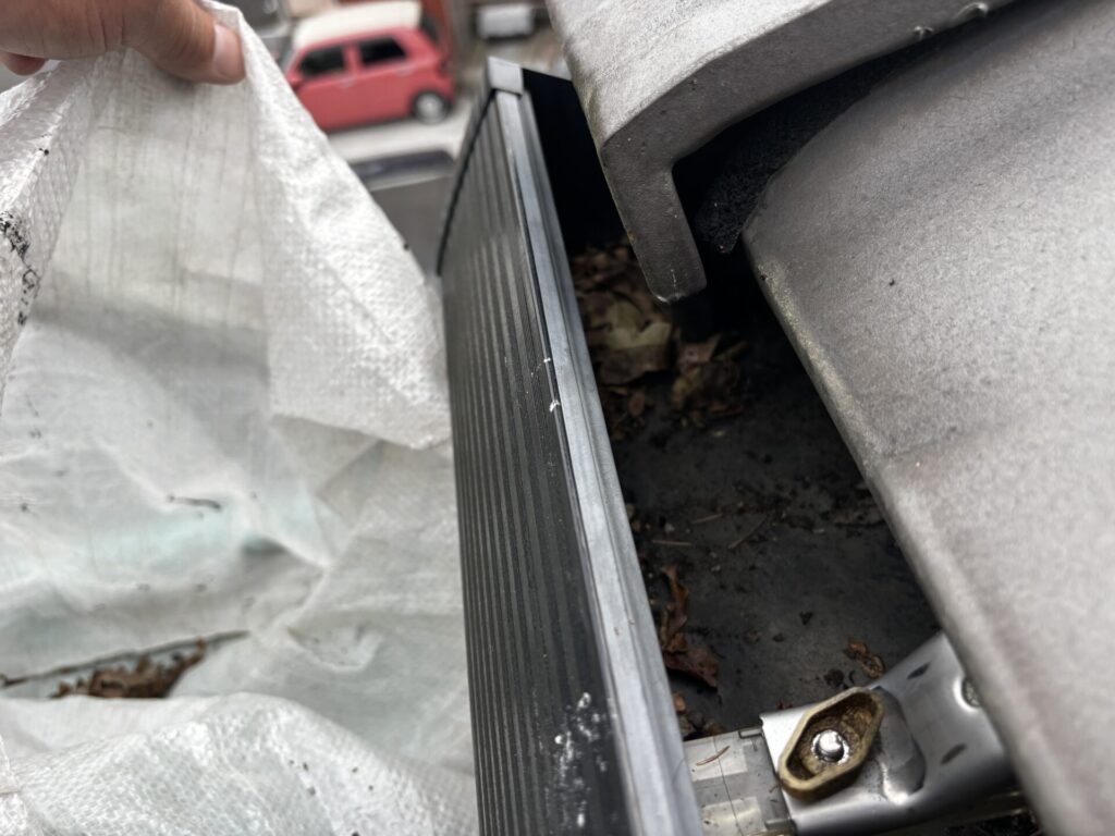 まず初めに雨樋に詰まった大量の落ち葉を綺麗に取り除き、清掃をする作業から始めました🧹