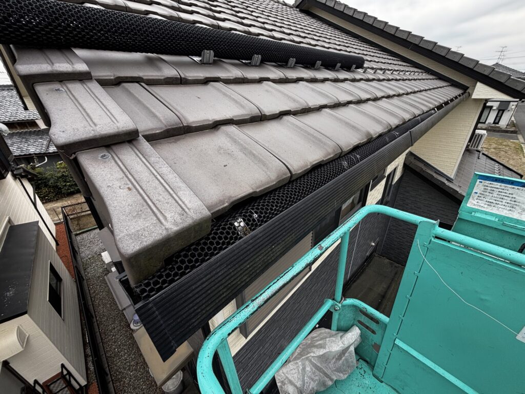 全ての雨樋にネットが設置され、見た目もスッキリと仕上がりました✨