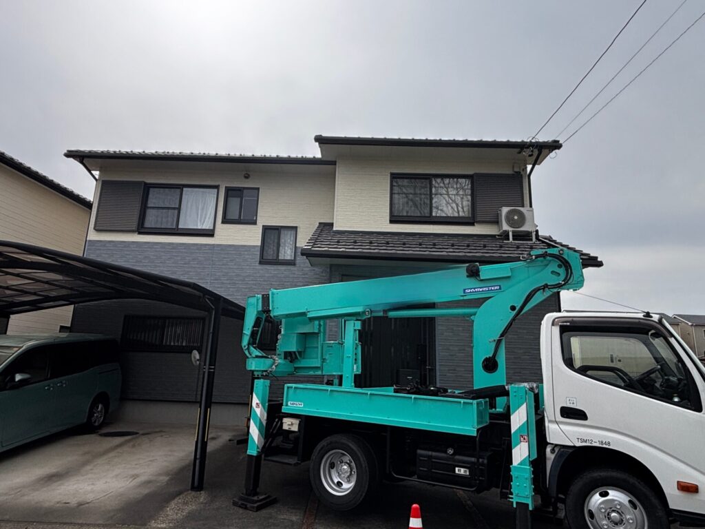 2階の軒先など、梯子では不安定な場所でも