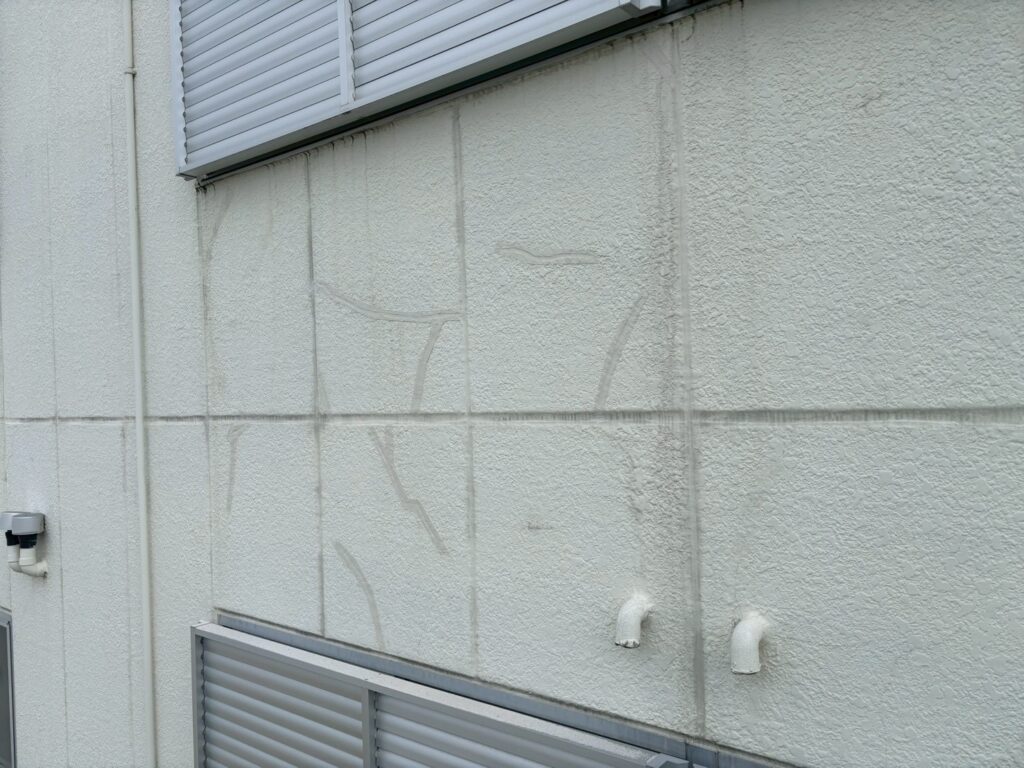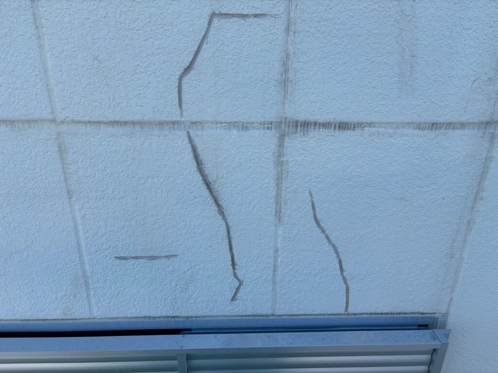 現場調査に伺ったところ、ALC外壁の建物で多数箇所クラック(ひび割れ)が起きている状態でした💦