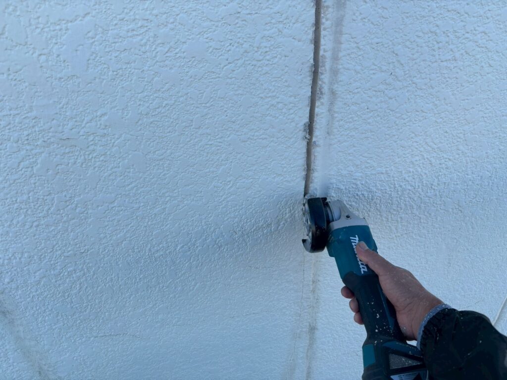 まず初めに外壁のクラック部分にUカット処理をしていきました!