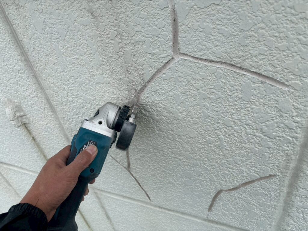 深いヒビは必ずシール材を奥まで入れる補修(Uカット)が重要です✅